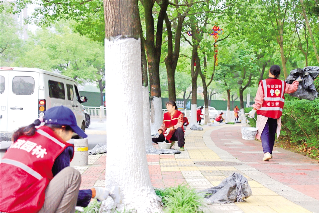 本網訊(通訊員 錢運立 李敏)11月5日,安康城區(qū)濱江大道、東內環(huán)路、黃溝路、東壩泵站等路段一派忙碌景象,綠化工人們或站或蹲,手持刷子、滾輪在樹干上往復涂刷……