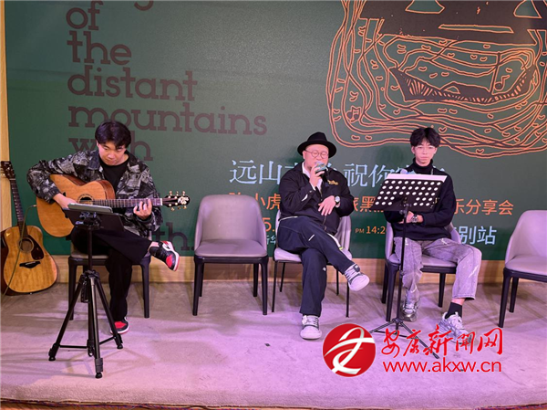分享會由安康市融媒體中心主持人王倩擔任主持,她以簡潔有力的開場,引出本次活動的核心人物——被譽為“西北民謠詩人”的陳小虎。陳小虎登臺后,首先與主持人共同展開“人與城”的深度藝術對談,他分享了《祝你安康》的創作契機,并闡述了在數字時代堅持制作黑膠專輯的文化意義。