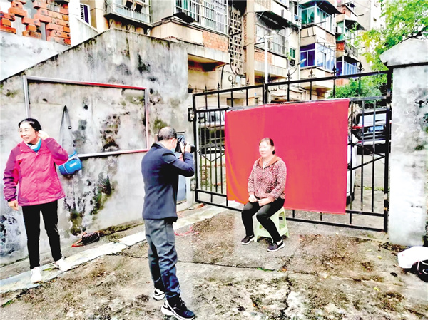 10月27日,漢濱區后張嶺社區黨委組織七十周歲以上的黨員舉辦重陽節主題活動。圖為現場給每個參加活動的黨員攝影留念。王振華 攝