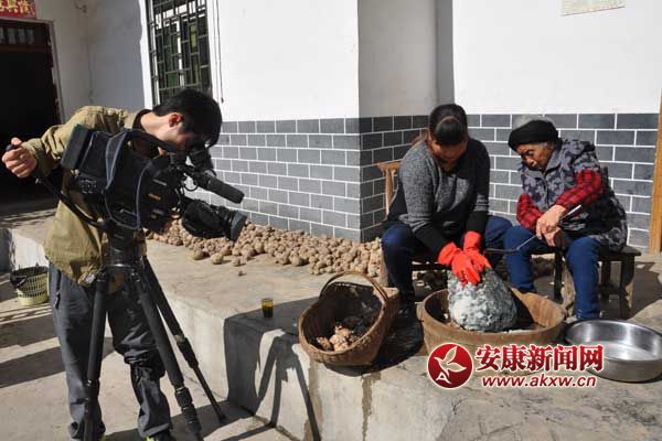在魔芋大戶王永成家中,攝制組深入細致的拍攝了磨芋、煮、凝固、切面和浸水等魔芋豆腐制作的全過程。