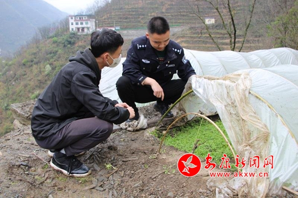 群眾徐良發(fā)口中的“劉警官”叫劉祥松,三十出頭,鎮(zhèn)坪人,是市公安局派駐旬陽縣金寨鎮(zhèn)珍珠村的駐村工作隊(duì)員。聽到老徐的呼喚,他挽起褲腿,三步并作兩步,跑到地里,二人一起忙碌起來。