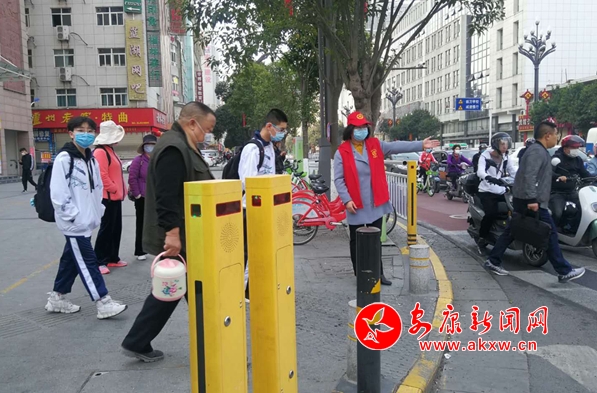 “你好,現在是紅燈,不能通行。”上下班高峰期間,志愿者們身穿紅馬甲對過往行人和非機動車駕駛員闖紅燈、不戴頭盔等不文明行為進行勸阻,引導市民自覺遵守交通法規,文明出行。同時,對過馬路不遵守紅綠燈、不走斑馬線的行人進行勸導和宣傳教育,引導市民做文明人,開文明車,行文明路,積極營造平安和諧的文明出行環境。