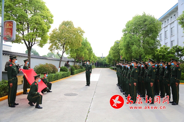 本網(wǎng)訊(通訊員 趙坤):“我志愿加入中國共產(chǎn)主義青年團(tuán),堅(jiān)決擁護(hù)中國共產(chǎn)黨的領(lǐng)導(dǎo),遵守團(tuán)的章程……”5月4日,武警安康支隊(duì)積極開展“追夢(mèng)強(qiáng)軍路,青春再出發(fā)”主題團(tuán)日活動(dòng),全體團(tuán)員面對(duì)團(tuán)旗舉起右手莊嚴(yán)宣誓。錚錚誓言,鏗鏘有力,官兵們表達(dá)著對(duì)革命先烈的崇高敬意,充分展示了廣大青年官兵朝氣蓬勃、銳意進(jìn)取、奮發(fā)向上的精神風(fēng)貌。
