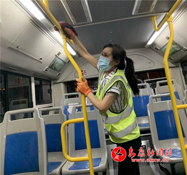 疫情爆發(fā)初期,市公交公司早部署、早安排,積極做好防護(hù)口罩、消毒物品的采購和儲備工作,向一線駕駛員送去口罩和84消毒液。為了讓車輛“徹底消殺、健康出發(fā)”,公司在市內(nèi)設(shè)置2個定點車輛消殺點,采取發(fā)車前、收車后的消毒方式,從車頂棚、車門、地板到車廂內(nèi)部設(shè)施進(jìn)行全面清掃、消毒,對乘客頻繁接觸的扶手、座椅進(jìn)行重點消毒擦拭,不留死角。