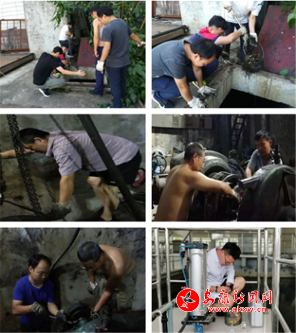 2019年7月汛期漢江水位迅速上漲,導(dǎo)致泥草浮渣和大量垃圾流入安康馬坡嶺水源地,嚴(yán)重影響了自來水的安全生產(chǎn)。面對困難,凈水分公司黨員突擊隊不分晝夜,堅守水源地,進(jìn)行清理,發(fā)現(xiàn)水泵堵塞了,隊員們就下井清渣,每次一個多小時,忍受著井下60多度封閉性高溫噪音環(huán)境。他們用自己的實(shí)際行動,保障了水源地供水安全。
