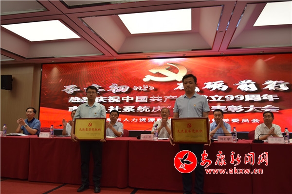 會議在雄壯的國歌聲中拉開帷幕,全體黨員重溫了入黨誓詞,以誓言激勵自己,發揚黨的優良傳統,牢記黨的宗旨,在各自崗位上,不忘初心,牢記使命,按照“四講四有”標準,做到“四個合格”,做無愧于共產黨員的光榮稱號。大會對市直人社系統2個先進基層黨組織、14名優秀共產黨員、6名優秀黨務工作者予以表彰。