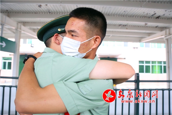 一雙雙緊握的手、一個個深情的擁抱、一對對浸透淚水的眼睛和最后一次的敬禮,無一不訴說著戰友之間無限的眷戀。伴隨著汽笛聲響起,火車緩緩前進,退伍老兵們帶著支隊領導的囑托和戰友的祝福,揮淚告別,送行官兵列隊敬禮,向老兵們表達最后的敬意。
