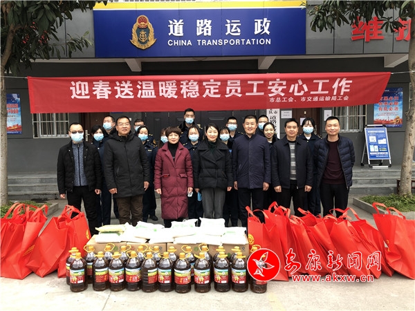 本網訊(通訊員 劉欣 李晨陽)2月7日,市總工會一行來到安康市交通運輸綜合執法支隊運政大隊,對一線運政執法人員送來慰問和節日的祝福。