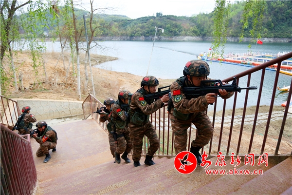 “消滅‘ 犯罪分子’,迅速解救人質(zhì)!”一場以劫持人質(zhì)事件為背景的城市反恐捕殲戰(zhàn)斗在武警陜西總隊(duì)安康支隊(duì)特戰(zhàn)訓(xùn)練中拉開帷幕。連日來,該支隊(duì)利用不同地域,組織特戰(zhàn)官兵圍繞城市反恐訓(xùn)練課題,進(jìn)行偵察、狙擊、排爆等多個(gè)課目訓(xùn)練,不斷錘煉特戰(zhàn)隊(duì)員在復(fù)雜多變環(huán)境下的反恐作戰(zhàn)能力,全面提升特戰(zhàn)分隊(duì)實(shí)戰(zhàn)化訓(xùn)練水平。(攝影/趙坤)