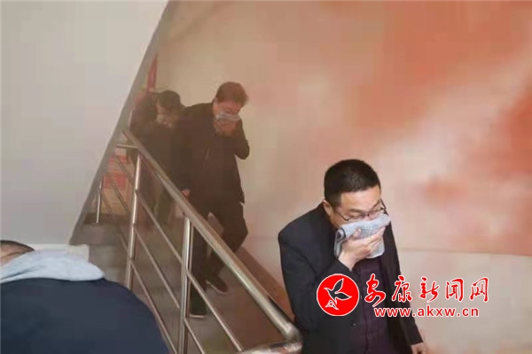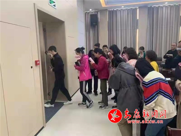 會后,以安全通道起火為模擬場景,組織受訓人員開展了應急逃生演練。隨著煙霧迅速彌漫,全體受訓人員掩住口鼻,迅速、有序地撤離到安全地帶。