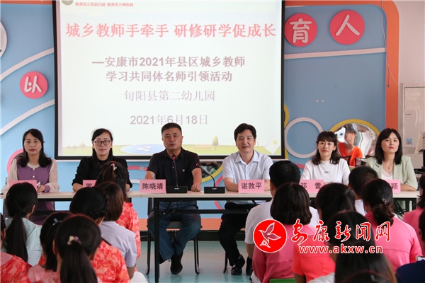 本網訊(通訊員 王國穎)為慶祝建黨100周年,貫徹黨史學習教育“學黨史悟思想辦實事開新局”的要求,加強城鄉教師之間的交流與溝通,促進城鄉教育均衡發展。6月17、18日,市幼兒園黨支部在市教體局的指導下,帶領“城鄉教師學習共同體名師引領”培訓團隊,到旬陽縣第二幼兒園開展以“城鄉教師手牽手 研修研學促成長”為主題的名師引領送教活動。市教體局教師工作科科長、旬陽縣師訓教研中心領導蒞臨活動現場指導培訓,旬陽縣22所鄉村幼兒園165名幼兒教師參加培訓。