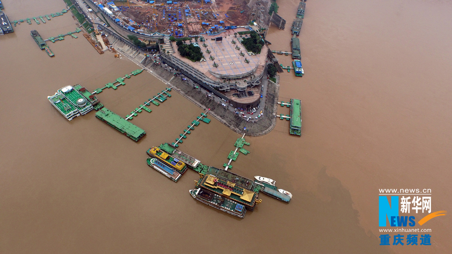 7月1日,今年長江、嘉陵江最大洪峰過境后的重慶朝天門碼頭。 本組圖片由新華網新聞無人機隊拍攝tsz安康新聞網