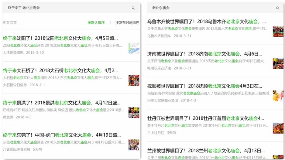 人民網北京4月24日電(孝金波 楊思萱)近日,“某城市被世界矚目了!終于來某地了!老北京文化廟會,某月某日盛大開幕”的消息在哈爾濱、沈陽等多地的網民朋友圈熱傳。一些網民興致勃勃稱“我要去逛民俗廟會!小伙伴們約起來”。經記者調查,此類消息系商業套路,這類廟會活動在網民親自體驗后,遭到無情吐槽。