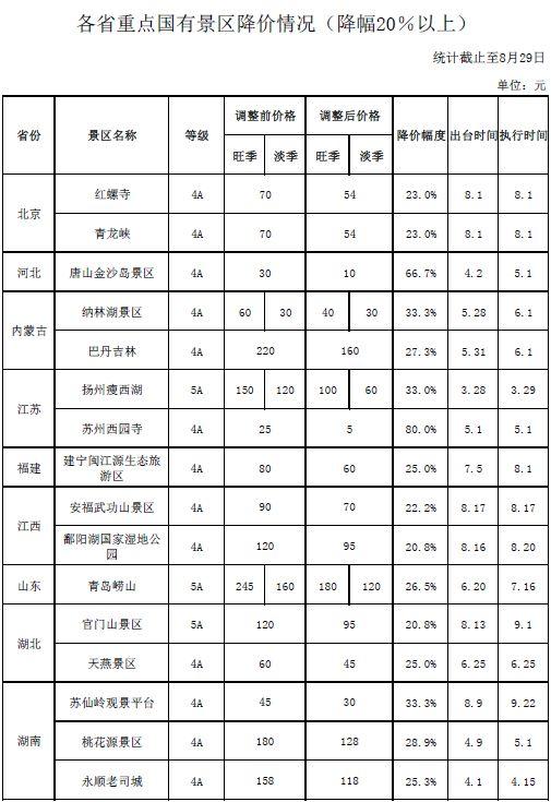 這一目標正在兌現。根據國家發改委公布的數據,截至8月29日,已有21個省份出臺了157個景區降價(免費開放)措施,25個省份確定了“十一”前擬降價(免費開放)的157個景區名單,以上合計314個景區。
