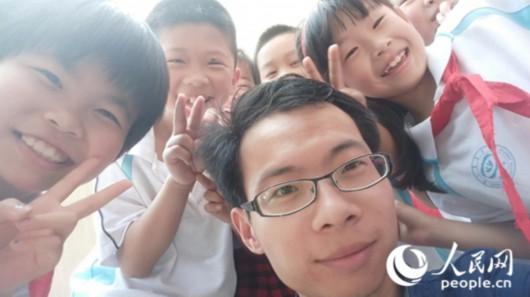 圖為華中農業大學附屬學校喻越老師和孩子們的自拍