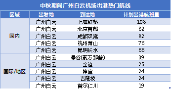 中秋期間上海虹橋、浦東機場出港熱門航線。