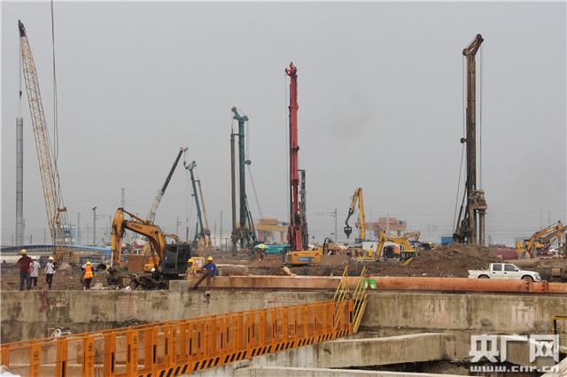 27日,珠西綜合交通樞紐江門站施工現常(央廣網記者鞏盼東 攝)