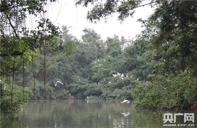 在“小鳥天堂”,棲息著夜鷺、池鷺和小白鷺等40多種鳥類。(央廣網記者鞏盼東 攝)