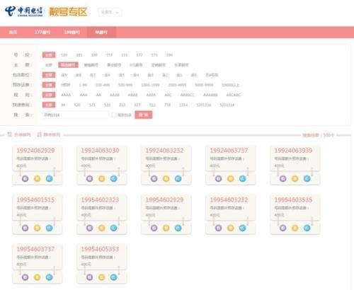某運營商展示的“靚號”。圖片來源:某運營商官網截圖