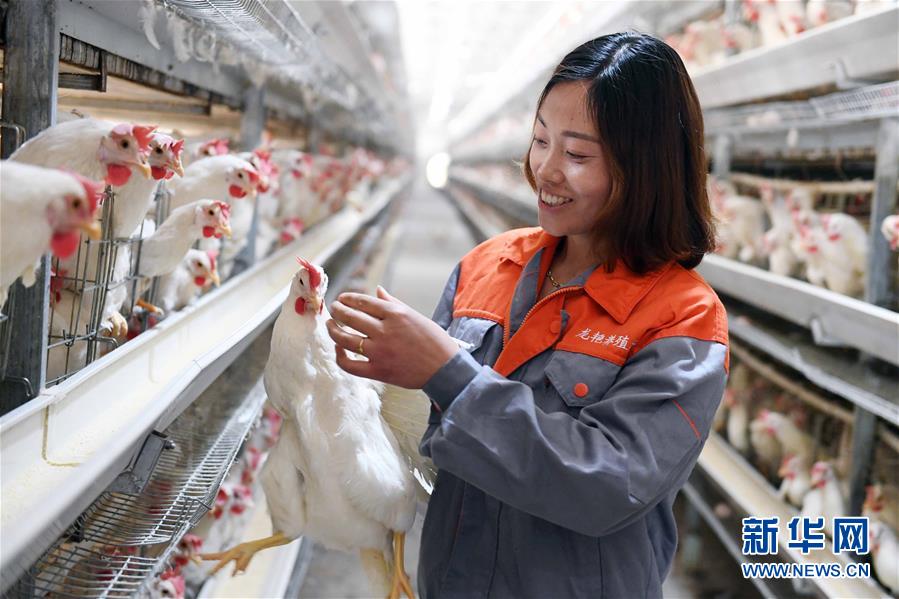 云南省鎮雄縣五德鎮渡船壩社區農家女劉艷外出務工多年后返鄉創業,帶動鄉親們發展山地生態雞和優質蛋雞養殖增收脫貧。這是劉艷在養殖場查看優質蛋雞(6月4日攝)。新華社記者 楊宗友 攝