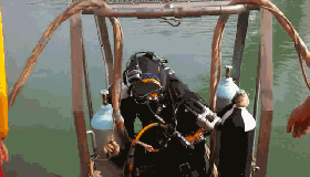 17時38分,第九組潛水員下水,檢查車輛離底狀態,為起吊做最后準備。