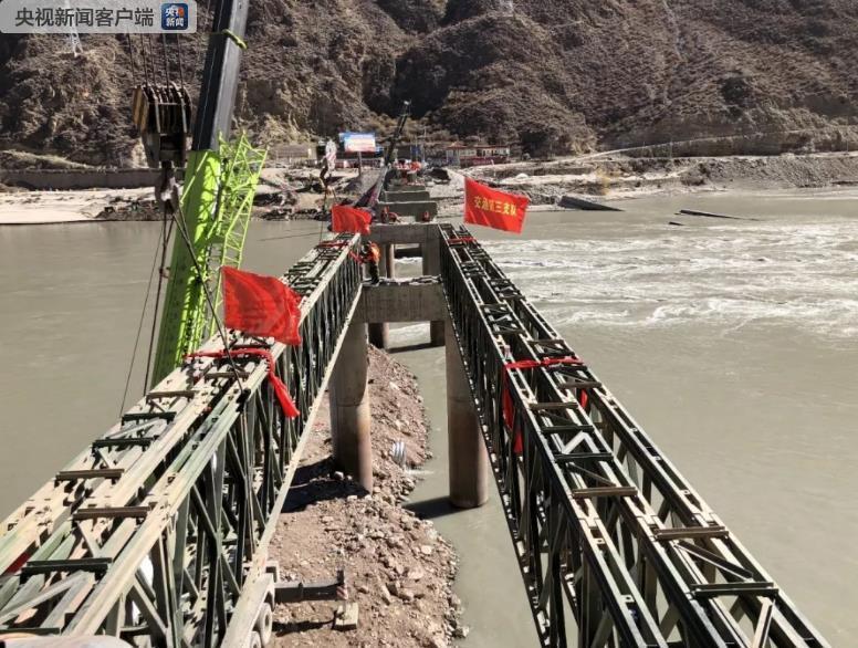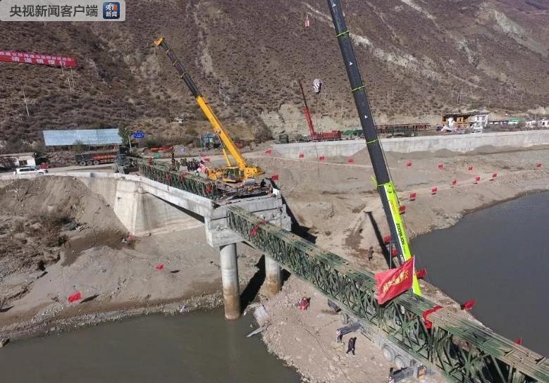 11月25日12時40分,經過武警某部交通三支隊官兵連續晝夜奮戰,被沖毀的金沙江大橋成功吊裝起第一跨,標志著318國道搶通取得突破性進展。