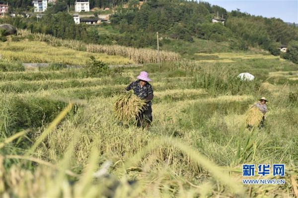 到了收獲季節,東邊村村民曾奎晃每次得用扁擔挑著100斤的稻谷,爬過落差100多米的梯田后,才能抵達一條小路,換用摩托車運輸。一天只能割200多斤水稻。