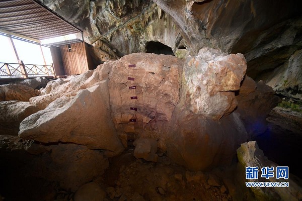 這是位于福建省三明市三元區巖前鎮的萬壽巖國家考古遺址公園船帆洞洞口的考古發掘土層(11月24日攝)。新華社記者 姜克紅 攝