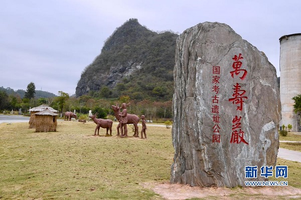 這是位于福建省三明市三元區巖前鎮的萬壽巖國家考古遺址公園石碑及雕塑(11月24日攝)。新華社記者 姜克紅 攝