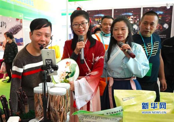 11月6日,參展商在森林食品展區直播銷售鹿角靈芝。5wb安康新聞網