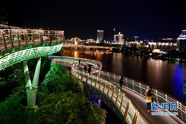 近年來,福建省三明市沙縣以虬龍橋棧道、七峰疊翠公園、凝翠閣、燈光秀等夜景工程為支撐,結合當地傳統美食文化,大力發展夜間餐飲、夜景旅游等“夜經濟”,成為積聚人氣、推動經濟社會發展的新引擎。