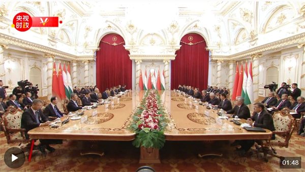 習近平指出,尊敬的拉赫蒙總統先生,我的老朋友,非常高興同你再次會晤。時隔5年再次到訪貴國,我看到了一個更加欣欣向榮的塔吉克斯坦。作為友好鄰邦和全面戰略伙伴,我們為此感到由衷高興。