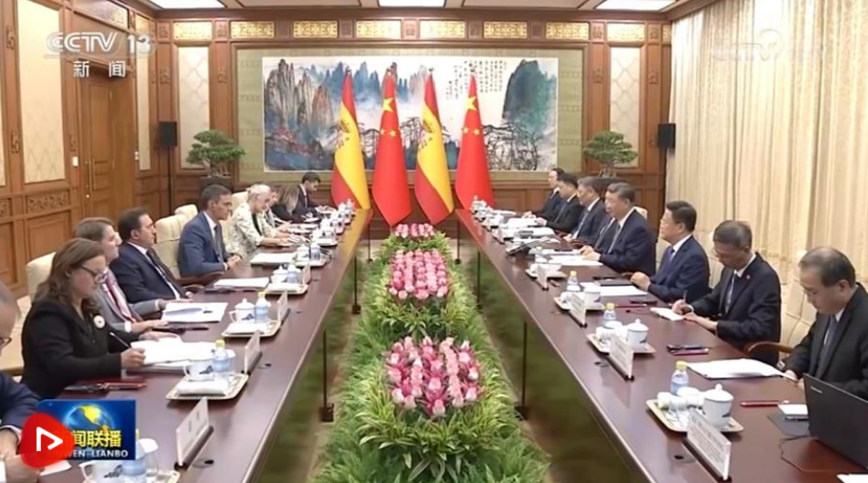 習近平指出,當今世界變亂交織,中國和西班牙都是具有責任感和使命感的國家,都倡導多邊主義和自由貿易。中方愿同西班牙擴大面向全球南方的第三方市場合作,加強在聯合國、二十國集團等國際組織中的溝通配合,為世界和平穩定和人類進步事業注入更多正能量。