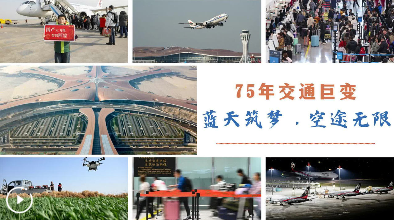 藍天筑夢,空途無限。75年來,航空交通運輸行業積極探索發展新路徑,不斷迸發出新的活力。