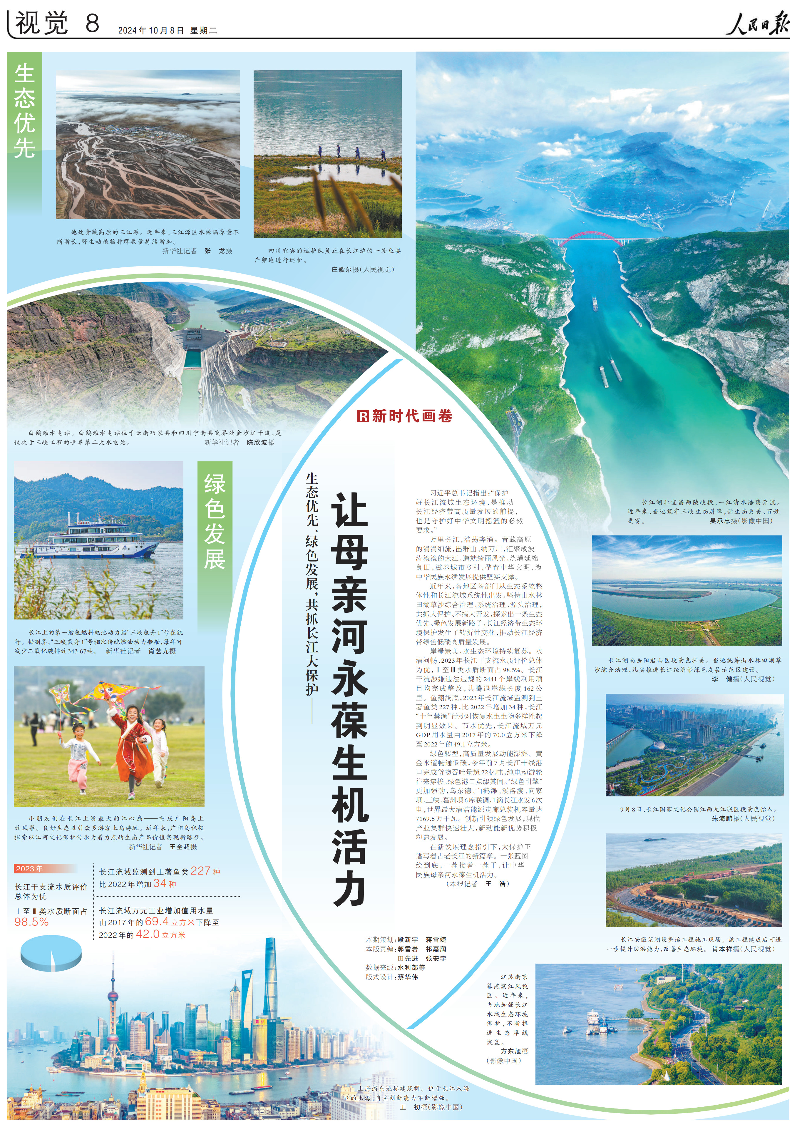 綠色轉(zhuǎn)型,高質(zhì)量發(fā)展動能澎湃。黃金水道暢通低碳,今年前7月長江干線港口完成貨物吞吐量超22億噸,純電動游輪往來穿梭、綠色港口點綴其間。“綠色引擎”更加強(qiáng)勁,烏東德、白鶴灘、溪洛渡、向家壩、三峽、葛洲壩6庫聯(lián)調(diào),1滴長江水發(fā)6次電,世界最大清潔能源走廊總裝機(jī)容量達(dá)7169.5萬千瓦。創(chuàng)新引領(lǐng)綠色發(fā)展,現(xiàn)代產(chǎn)業(yè)集群快速壯大,新動能新優(yōu)勢積極塑造發(fā)展。hk7安康新聞網(wǎng)