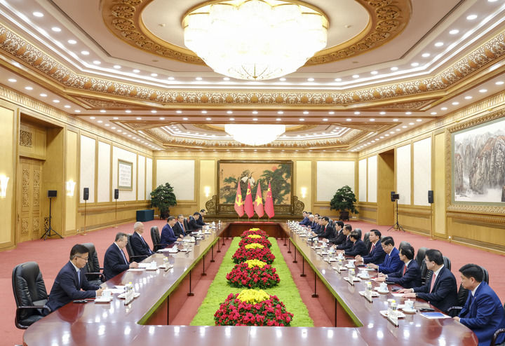 習近平指出,堅持共產黨領導和社會主義制度是中越兩國最本質的特征,也是發展中越關系最堅實的政治基礎。中方將越南視為周邊外交的優先方向,愿同越方一道,在深化高水平互利合作上走在前列,在維護國際公平正義上走在前列,在推動人類進步事業上走在前列,攜手構建具有戰略意義的中越命運共同體。
