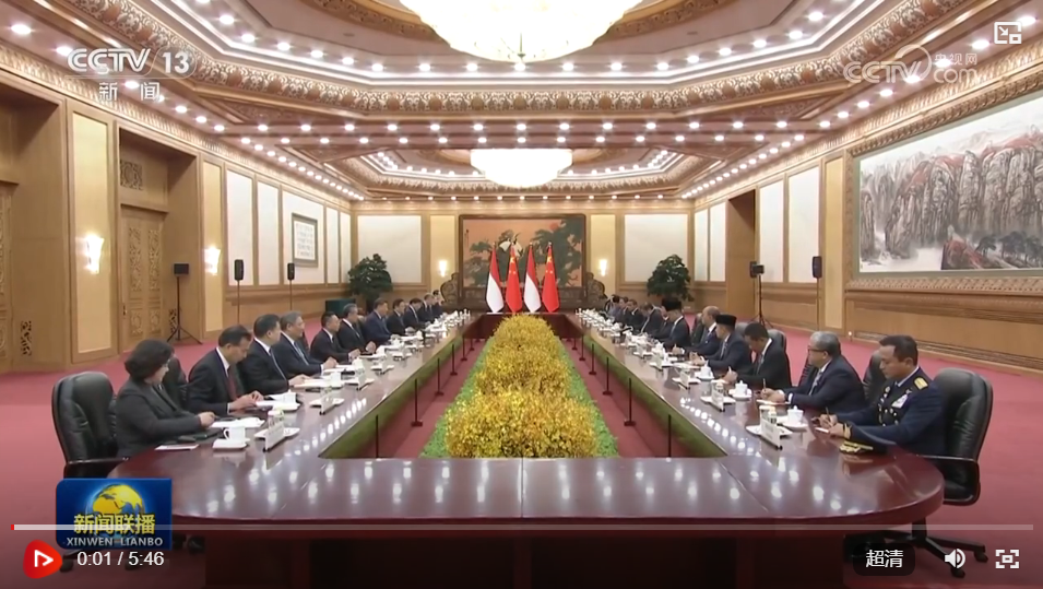 習近平指出,你在今年3月當選總統(tǒng)后第一時間首訪中國,正式就職后又首先對中國進行國事訪問,體現(xiàn)了你對發(fā)展中印尼關系的高度重視,也展現(xiàn)了兩國關系的高水平和戰(zhàn)略性。堅持戰(zhàn)略自主、互信互助、合作共贏、公平正義,這既是對過去幾十年中印尼關系發(fā)展經驗的總結,也是未來兩國關系長期穩(wěn)定發(fā)展應該遵循的重要原則。中方愿同印尼新政府一道,繼往開來,構建具有地區(qū)和全球影響力的命運共同體,續(xù)寫發(fā)展中大國聯(lián)合自強、團結協(xié)作、互利共贏的新篇章。