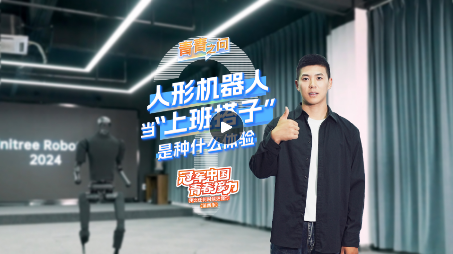 11月9日,“冠軍中國·青春接力”網絡主題活動暨我比任何時候更懂你(第四季)系列短視頻之《人形機器人當“上班搭子”是種什么體驗?》上線。在本集短視頻中,青青智造家、杭州宇樹科技有限公司G1機器人項目組成員劉金達,介紹了他的人形機器人“同事”們,展現了在AI技術的加持下人形機器人廣泛的應用場景。