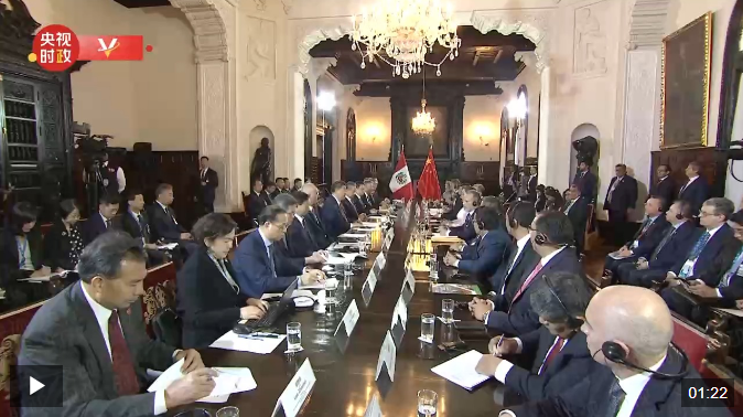 習近平指出,很高興應總統女士邀請,對秘魯進行國事訪問并出席亞太經合組織領導人非正式會議。這是我第三次訪問秘魯,也是繼去年我們在舊金山初次會晤和今年你訪華以來,我在一年時間里第三次同總統女士會晤。一踏上秘魯這片美麗的土地,我就強烈感受到秘魯人民對中國人民的友好情誼,心里十分溫暖。
