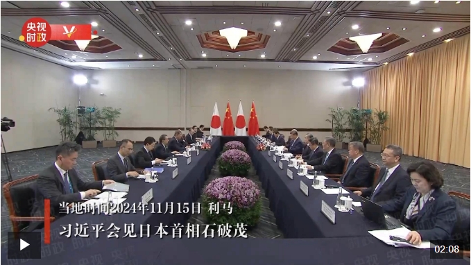 與日本首相石破茂會見時,習近平主席說,當前,中日關系處于改善發展的關鍵時期。中日互為近鄰,同為亞洲和世界重要國家,兩國關系具有超越雙邊的重要意義。中國的發展是世界的機遇,對日本等周邊鄰國更是如此。