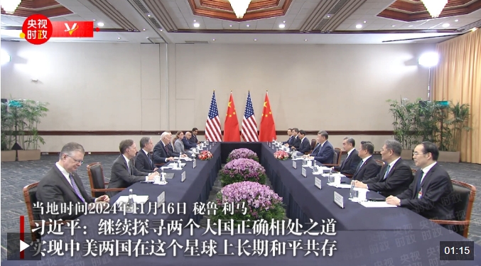 當地時間11月16日下午,國家主席習近平在利馬同美國總統拜登舉行會晤。