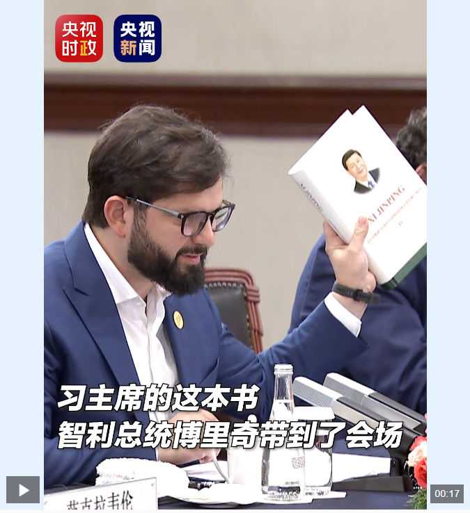 當地時間11月15日下午,中國代表團駐地會見廳,智利總統博里奇在見到習近平主席時,特地帶來了他在圣地亞哥國際書展上看到的《習近平談治國理政》一書。j6D安康新聞網