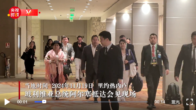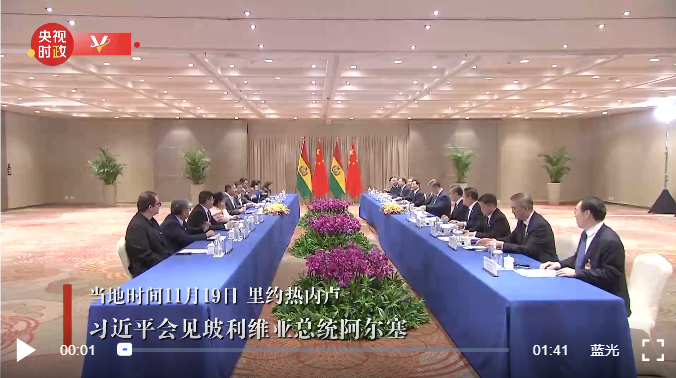 當地時間11月19日,國家主席習近平在里約熱內盧出席二十國集團領導人峰會期間會見玻利維亞總統阿爾塞。