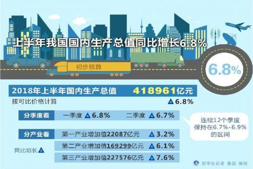 國家統計局:2018上半年我國GDP同比增長6.8%