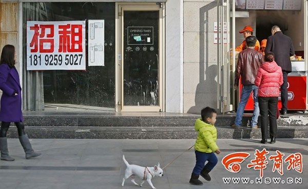 寒潮如期而至,2016年剛剛開始,古城西安已經下了三場雪,溫度也越來越低。細心的你會發現,走在大街小巷里,很多門面房是空的,而且空的店鋪都貼著招租、轉讓的……