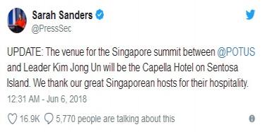 人民網北京6月6日電(姚麗娟) 美國總統特朗普與朝鮮最高領導人金正恩的首次會面將于6月12日在新加坡舉行。美國白宮5日公布了美朝領導人會晤的……