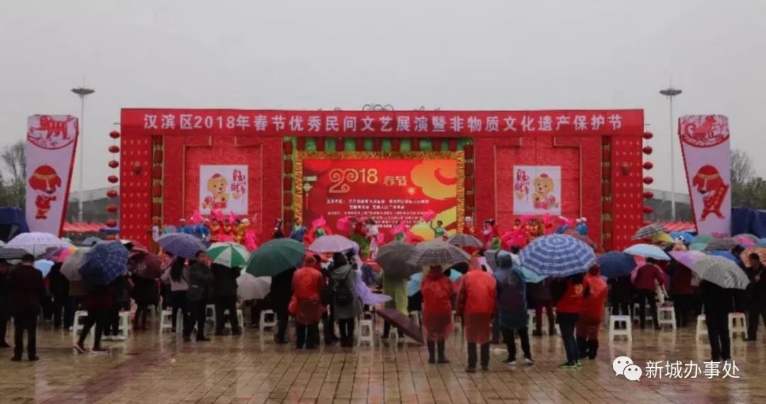 安康新聞網訊(通訊員 唐志丹 王艷)炮竹聲聲辭歲舊,和風送暖迎新春。2月27日上午十點,漢濱區2018年春節優秀文藝展演新城專場在安康金州廣場舉行。天空雖然飄著細細的春雨,但是依然吸引著數千名市民冒著細雨前來觀看。