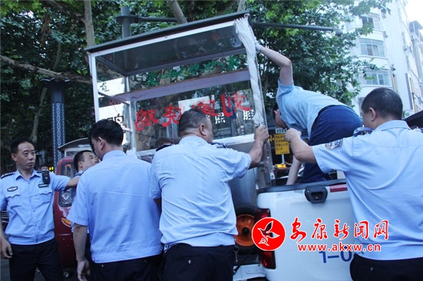 安康新聞網訊(實習記者 黃慧慧)7月18日晚,漢濱區城管局第一城管大隊聯合城管公安大隊出動執法人員30余人對興安東路、靜寧北路口、金州廣場周邊占道經營的流動攤販進行了集中整治,現場共查扣經營工具8套。