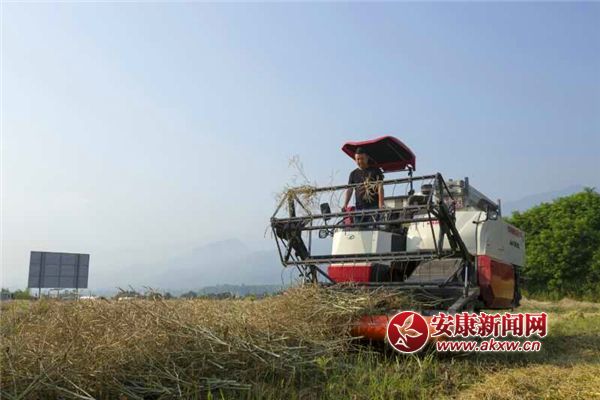 安康新聞網(wǎng)訊(通訊員 謝小利)“轟隆隆”一臺聯(lián)合收割機(jī)加大油門駛?cè)胗筒说兀筒硕拸氖崭顧C(jī)“嘴”里吞進(jìn)去,瞬間去殼的菜籽從側(cè)邊吐出來,鍘碎的秸稈均勻的灑在地里 …