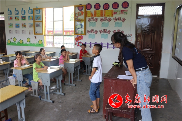 當(dāng)這支熱情洋溢的志愿隊(duì)一跨進(jìn)太平小學(xué),放假的校園頓時(shí)增添了很多生機(jī)。45名學(xué)生回到熟悉的教室,14位大哥哥大姐姐當(dāng)起了輔導(dǎo)教師,教他們做暑假作業(yè)、繪畫練字、背誦詩歌、唱歌跳舞、打籃球……盡管天氣炎熱,大學(xué)生始終按著所排的課表有條不紊地上課。他們還頂著烈日走村到戶進(jìn)行家訪,和家長交流在校的學(xué)習(xí)表現(xiàn)情況。并與10位建檔立卡貧困學(xué)生進(jìn)行一對(duì)一結(jié)對(duì)幫扶,后期將繼續(xù)給予學(xué)業(yè)輔導(dǎo)和經(jīng)濟(jì)幫助。